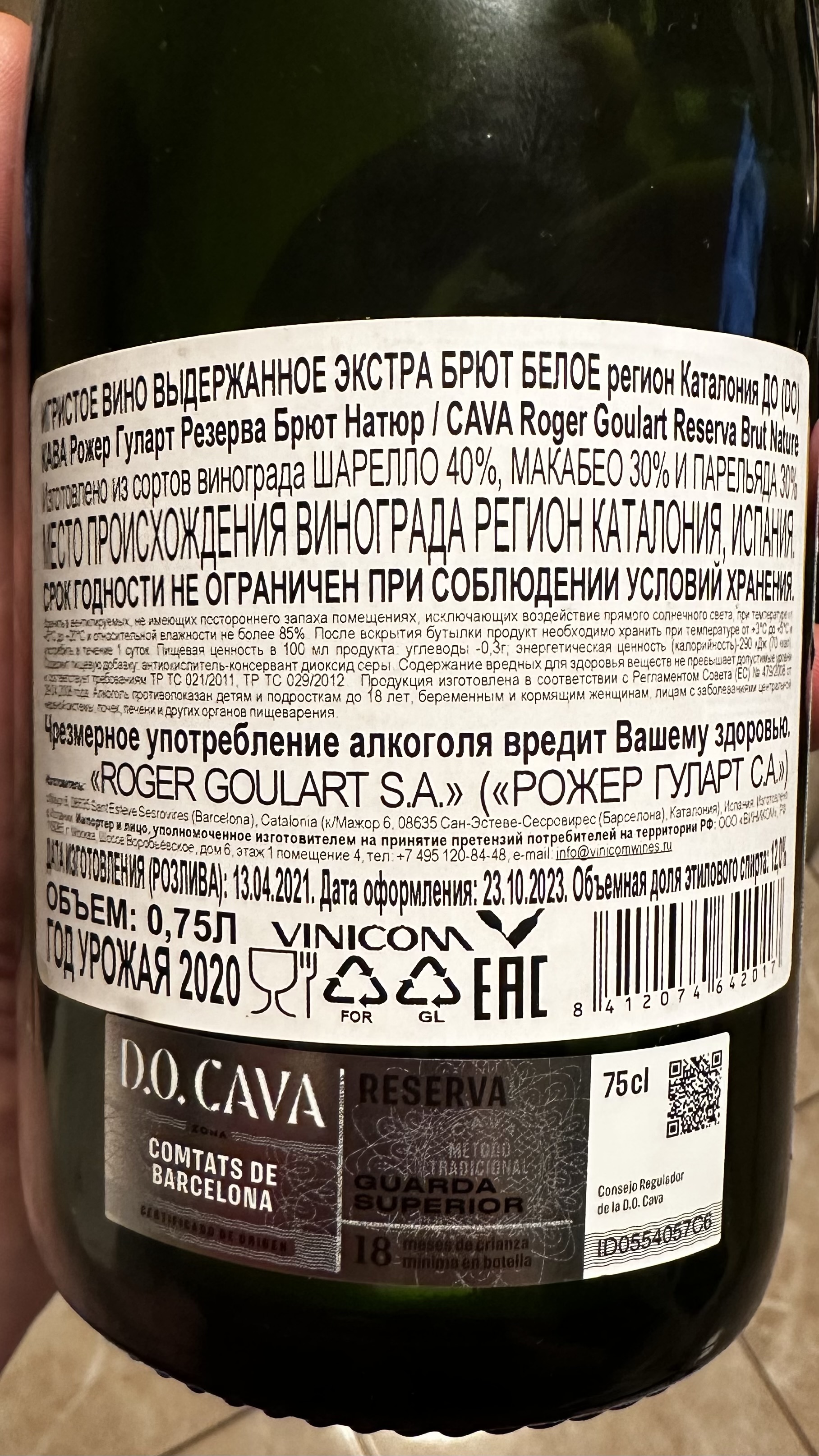 85 Испания Игристые Тип Кава Год 2020 Сахар 3г/л Макабео Перельяда Шарелло Соломенное Немного меда, воск, нотки лечебных трав, яблоки, дистилят? Молодое, яблоки, лимон, гастрономичное Заметка Хороший баланс, хорошая гастрономичность Плакетки Дополнительное фото