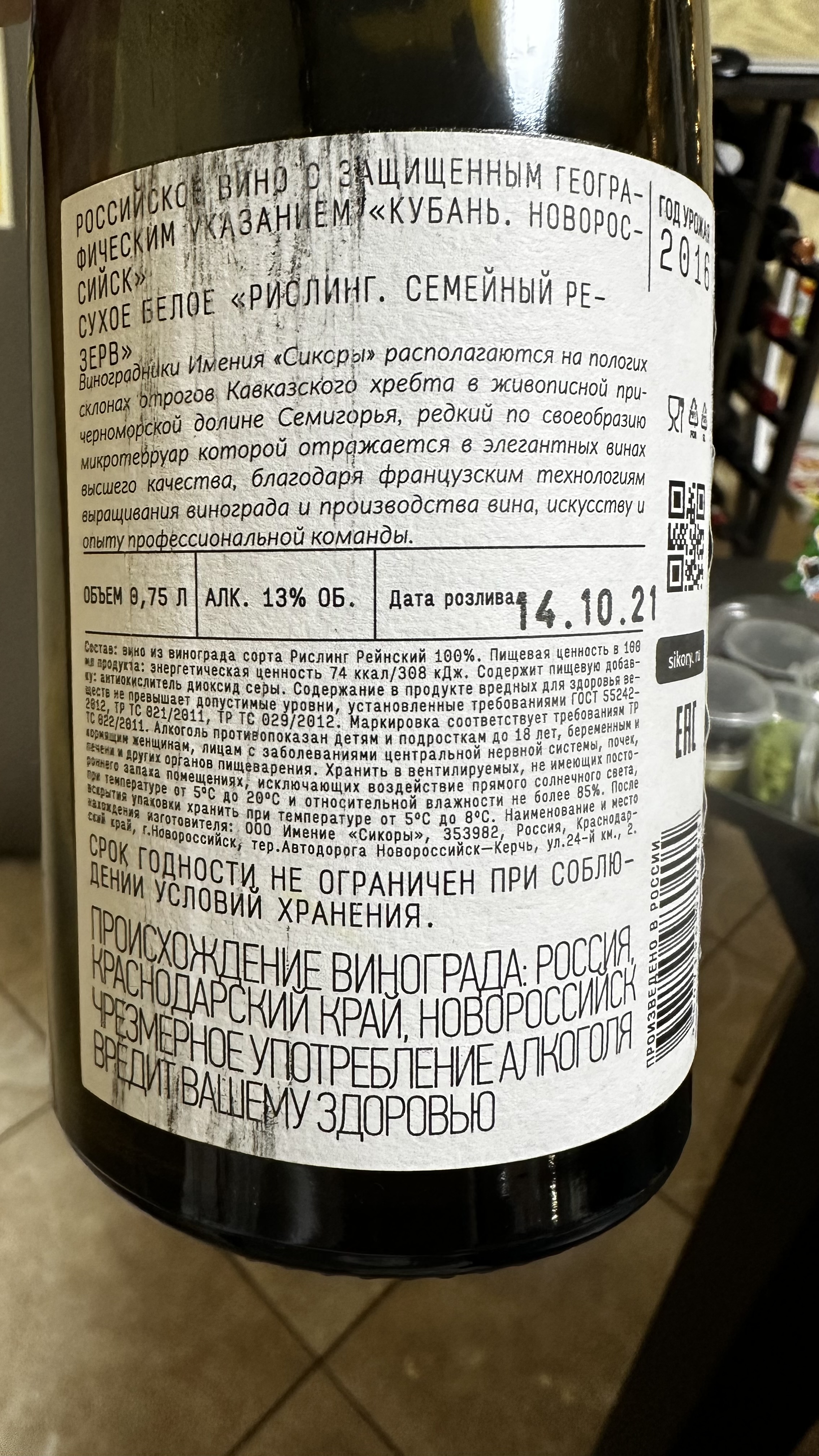 Никогда не любил горчинку в вине, тут она мне показалась навязчивой. А так очень тельный насыщенный рислинг. С глубокими тонами выдержки. Развивается в бокале.